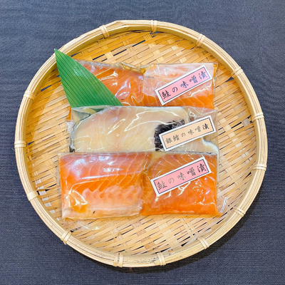 【セット内容】鮭の味噌漬け4切れ、銀だらの味噌漬け2切れ
